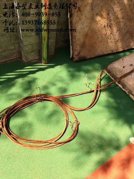 PS:去年這個時候來過這里維修,上次只不過是管路出現(xiàn)了漏洞,造成不出水。這次出現(xiàn)的故障時開不了機,一開就跳閘,懷疑電機短路,吊出檢查水泵,檢查后發(fā)現(xiàn)電機已燒壞??紤]到水泵使用的時間較長,所以我們進行更換處理。