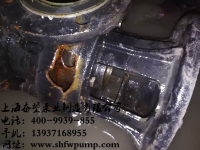 故障現(xiàn)象:泵殼和底座均有破損,原來(lái)安裝的鉸刀也不見(jiàn)了。